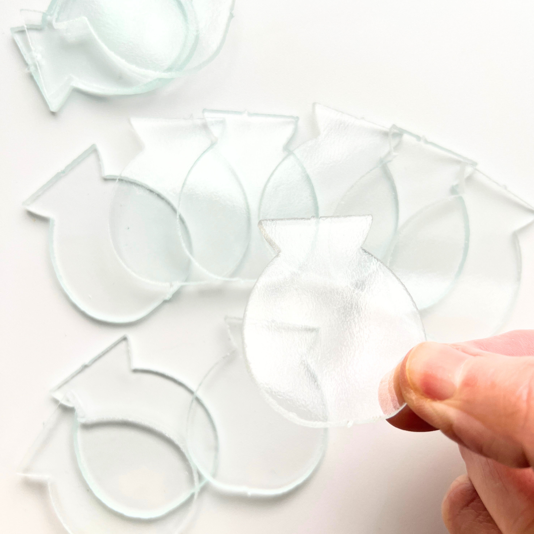 Custom designed by Sharra, sized to fit into a 4x4 Mini Floral Mosaic composition. This clear glass has been cut by water jet laser.